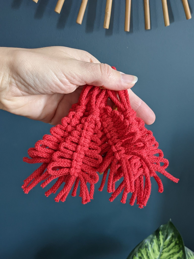 Apportez une touche chaleureuse et festive à votre décoration avec ce mini sapin en macramé.